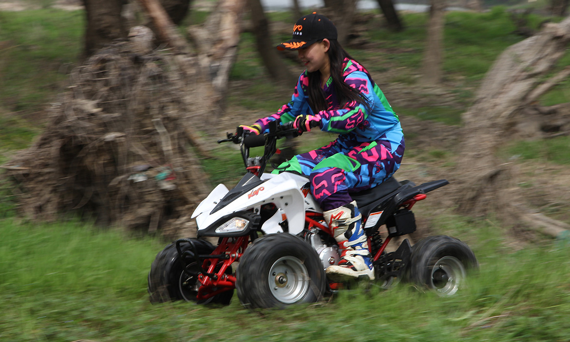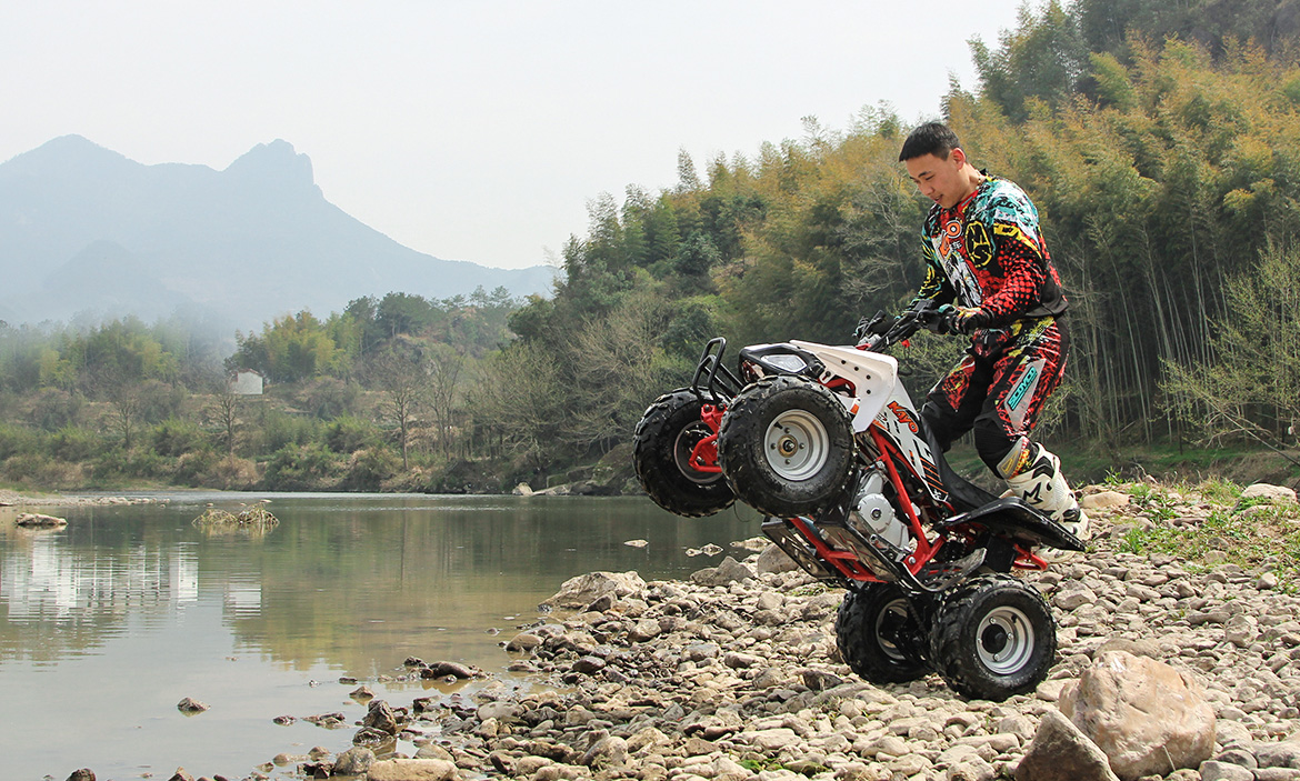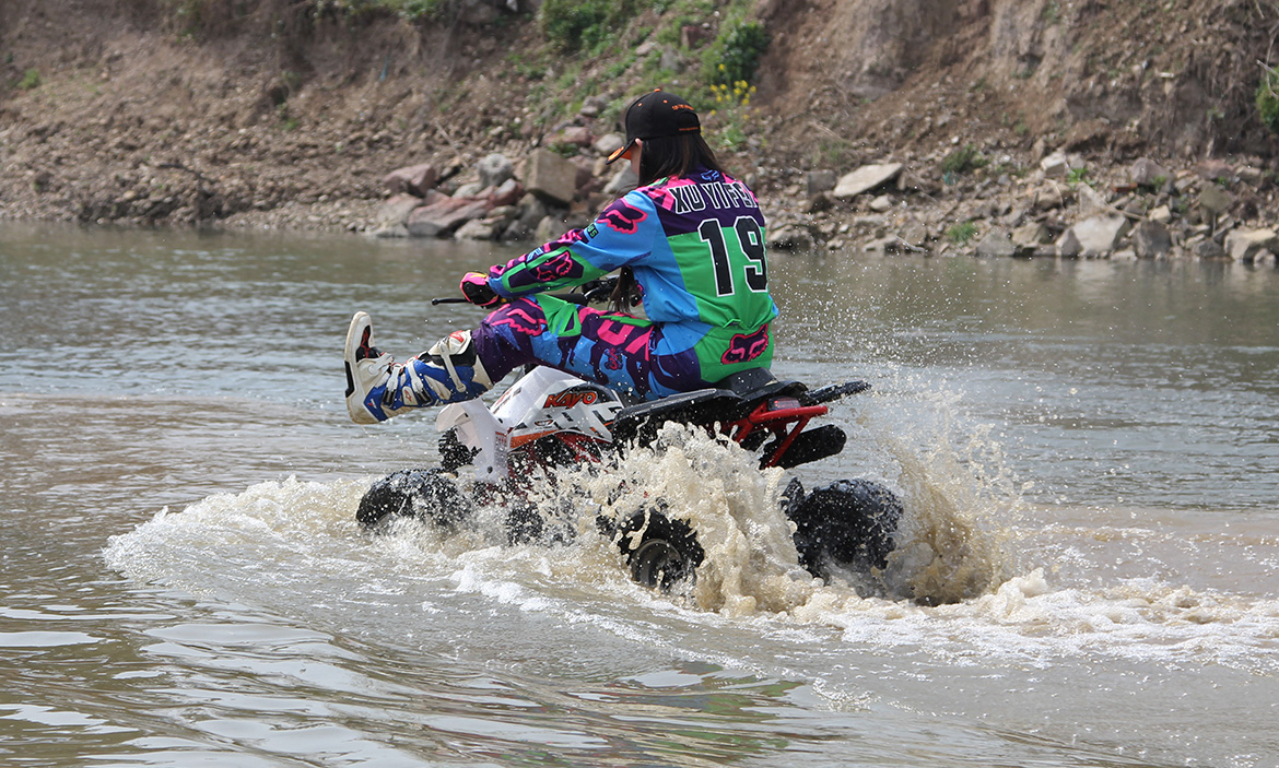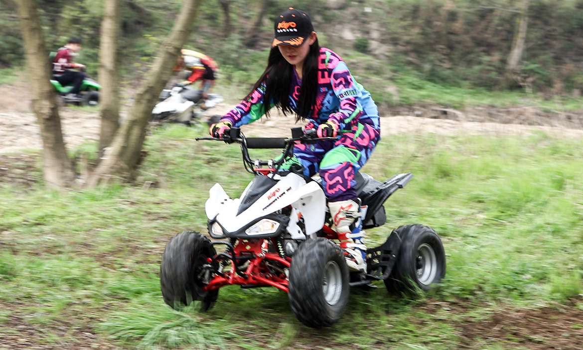 是青少年使用的,华洋全地形车系列中最初级的专业级运动型沙滩车,承受成人在场地内的小幅度飞跳完全没有问题。可以作为运动训练车及初级比赛使用。