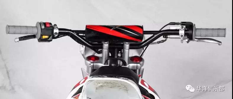 高强度钢管材料车把,操控更加自如。高强度拉力钢材料车把Φ22mm,标配华洋专用超软越野把套。