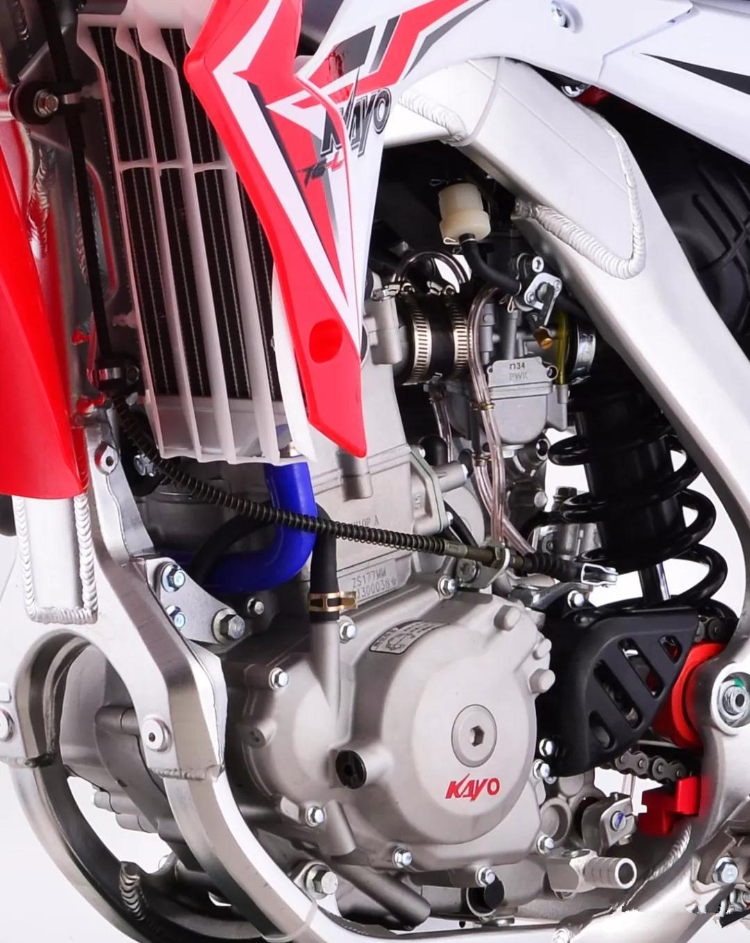 发动机采用稳定的NC250水冷发动机并匹配化油器进气系统:T6L采用量身定制的水冷单缸四气门顶置凸轮轴发动机,并配置了平衡轴设计,在稳定输出动力的同时,可以大大降低车辆的震动。在对进气要求不高的爬山、林道骑行中,配置了更适合的34口径尼比化油器,使得结构更简单实用。