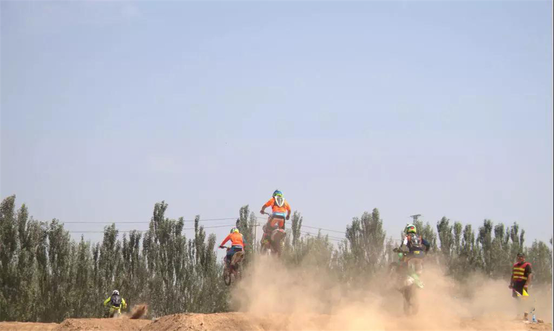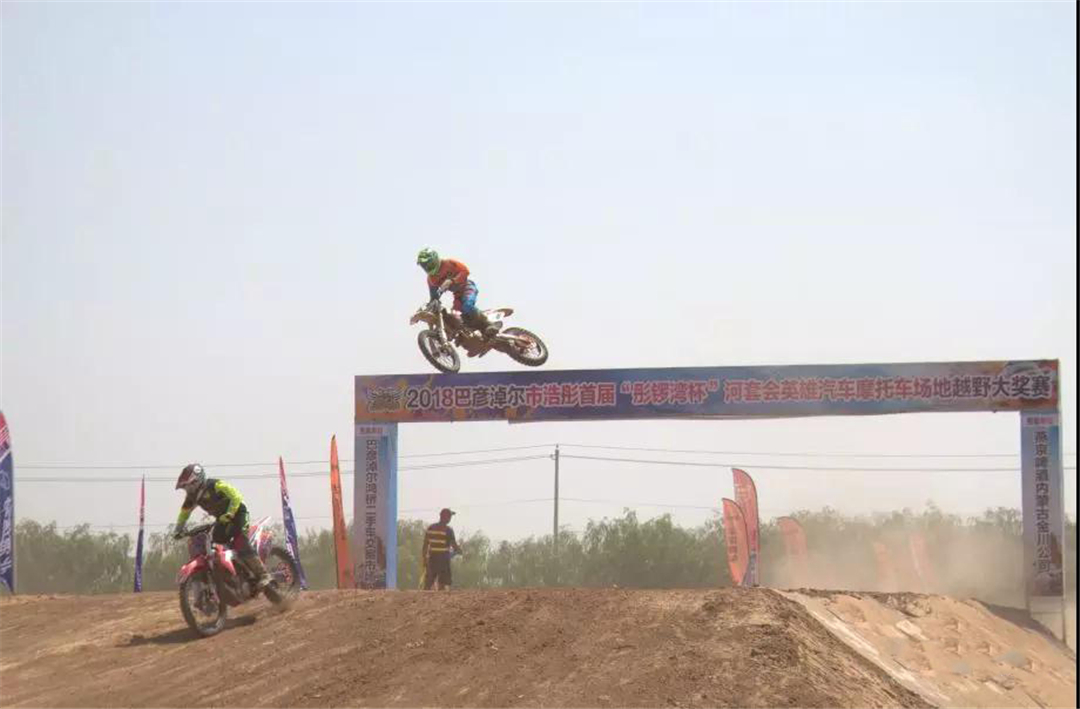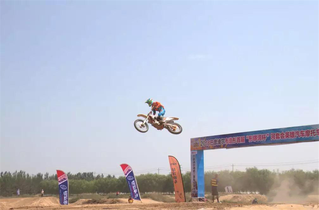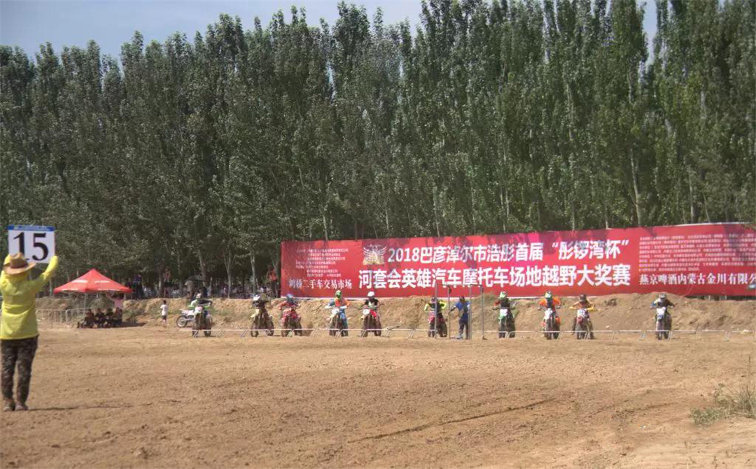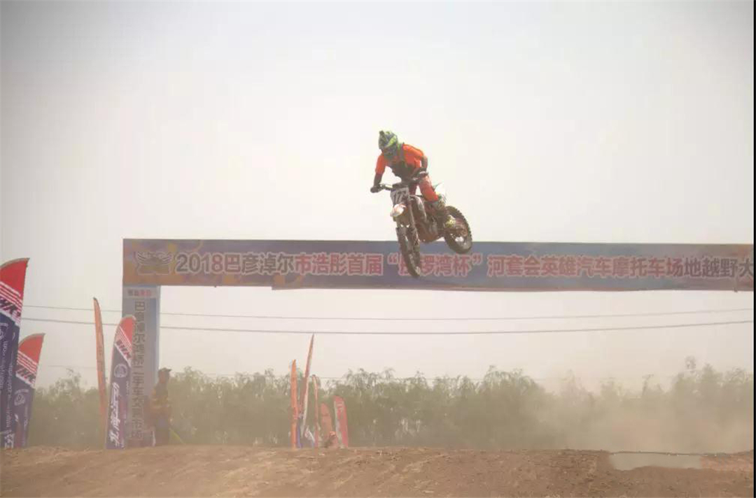 在富饶的湖泊(巴彦淖尔)上演了一场精彩的越野摩托车比赛,华洋赛车队“百举百捷”