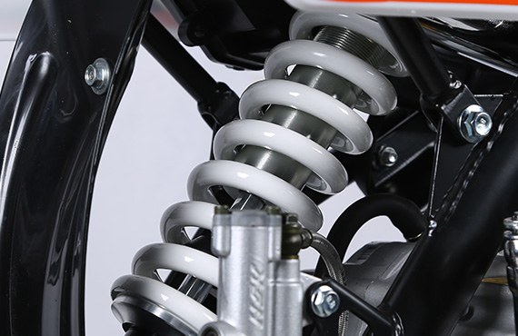 本田减震供货工厂生产,360mm超长行程后减,舒适性极佳。无论是在场地小跳还是特技训练都可以感受到专业车的舒适性。