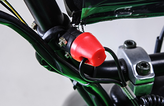 前置拉线紧急熄火开关装置,可以在驾驶中出现失控状态时及时切断动力,从而可靠的保证驾乘者的安全。
