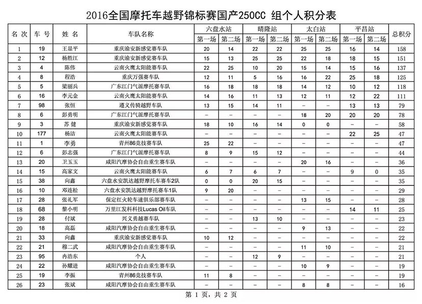 10月27日,2016中国摩托车越野锦标赛(平昌)总决赛在四川落下了帷幕。至此,该项比赛的2016年赛季也划上了圆满的句号。华洋越野摩托车“王者K6”凭借优异的性能,和华洋赛车的“将士们”一往无前,独揽国产250CC组别年度个人总冠亚军!