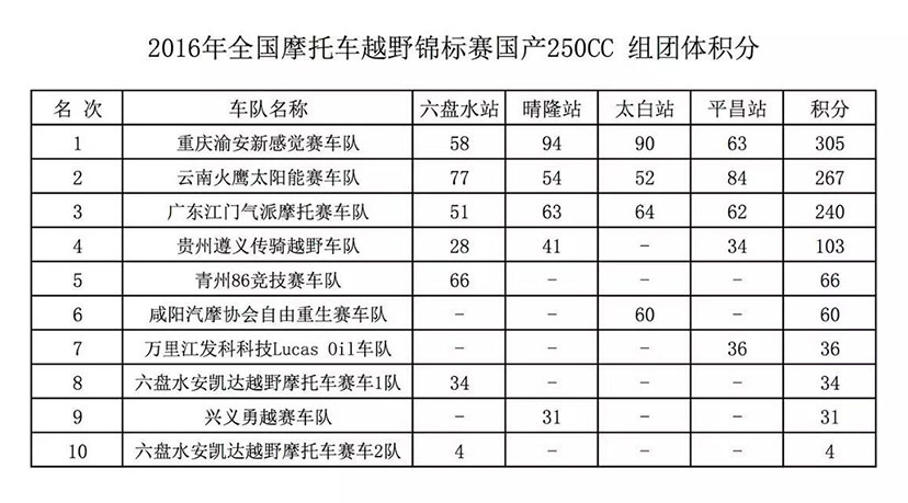 重庆渝安新感觉赛车队、广东江门气派摩托赛车队分别荣获年度团队总冠军、季军!