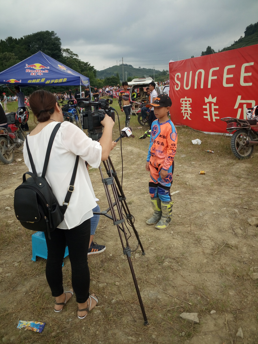 地方电视台的记者,对华洋赛车车手进行采访▽
