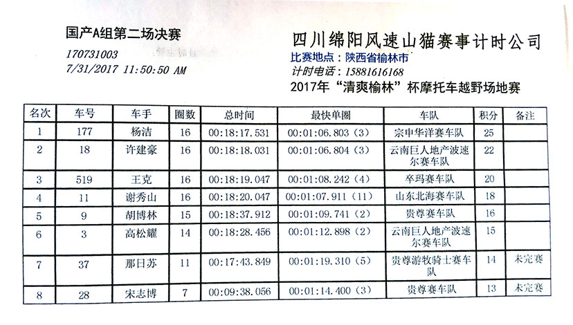 榆林摩托车越野场地赛华洋荣获一个冠军,两个季军