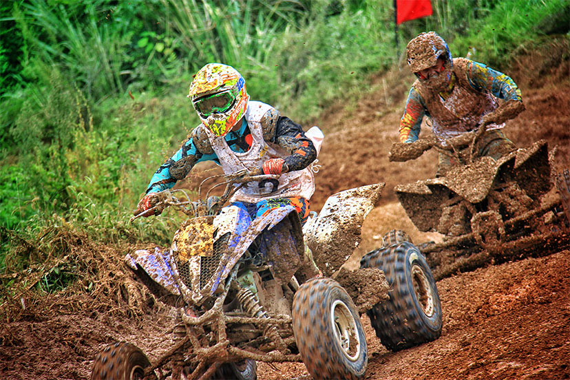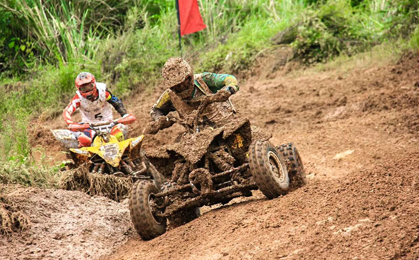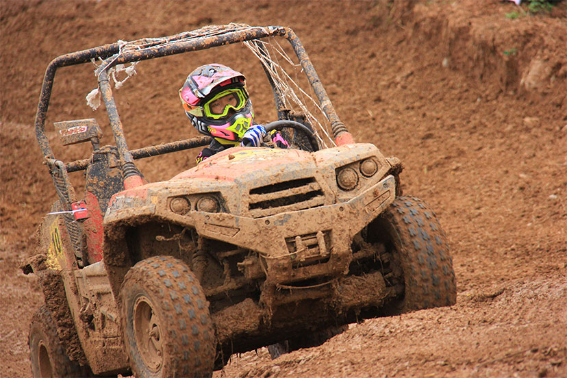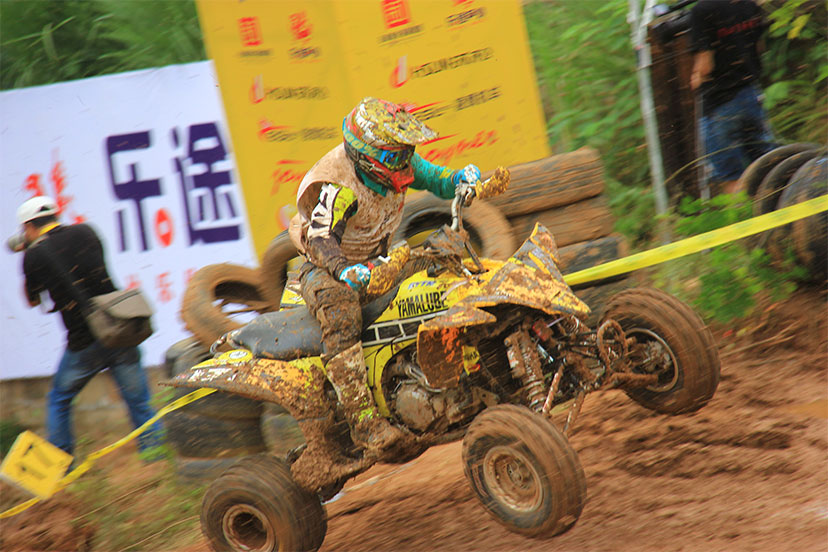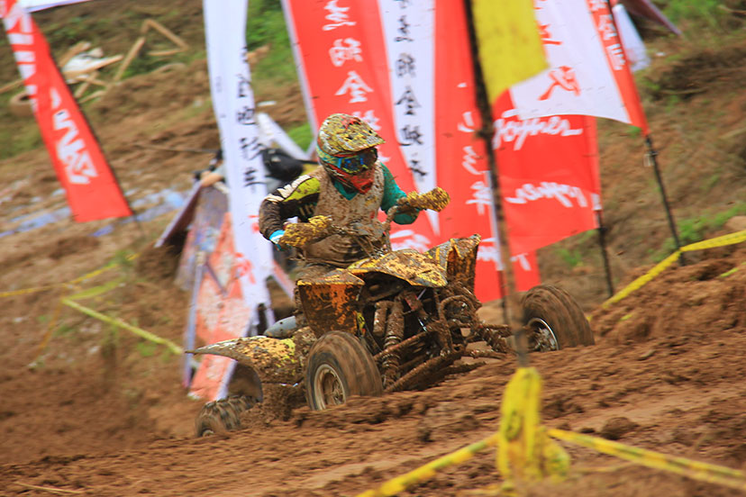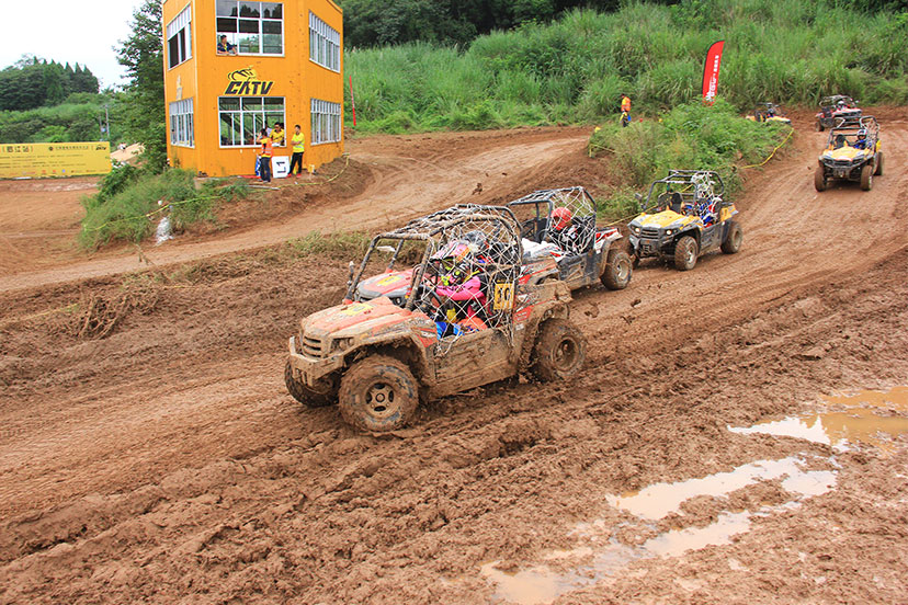 本次比赛赛道将全部采用国家一级全地形车专用赛道,以V字沟、油木坡、轮胎坑、软沙路、水潭、泥坑、双丘及多弧度弯道等考验车辆的通过性、复杂地域的适应性等。比赛刚开始,泥泞的赛道给赛手带来了很大的阻力。