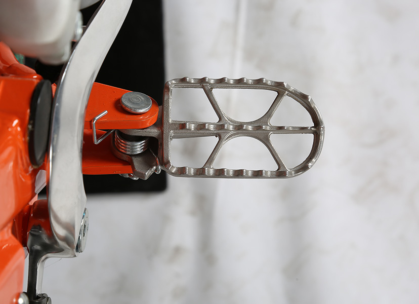 ?全新不锈钢材料高强度脚踏。强度更高,更加耐受跳跃及撞击带来的冲击,更大程度的避免了因意外摔车造成的损坏问题。