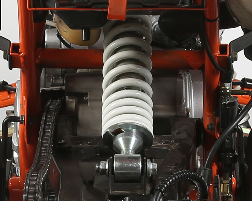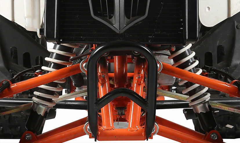 使用加大行程的前后减震器,进一步提升了ATV的越野性能,本田体系川南专业级的避震,高性能、高稳定性。专门调校的压缩回复阻尼,使得骑行成为一种享受。超大的形成设计,再配以独立摇臂设计,使得通过前方障碍都变得轻松自如,同时在场地飞跃时没有任何压力。