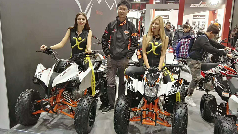 华洋赛车携运动ATV系列、通用ATV系列、公路赛车系列、儿童越野车系列等产品辉映全场。车展正式开始,华洋赛车参展车辆也逐渐映入大家的眼帘,现场聚集了一波又一波的参展摩托车爱好者,大家迫不及待想和它们来一次亲密的接触。