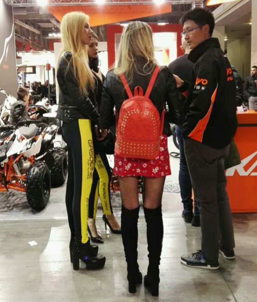 福利福利,华洋展位不仅吸引了众多客商,国外的美女越野爱好者也前来咨询。