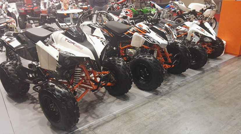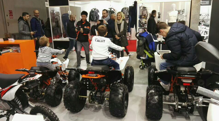 此次米兰展,华洋赛车展台另一个焦点便是ATV四轮车系列的展出,A300,A250,AU200-2,AU150,A125,AT110,AY70等等强势阵容,从霸道总裁范的运动ATV到可爱萌萌哒儿童越野ATV都有!