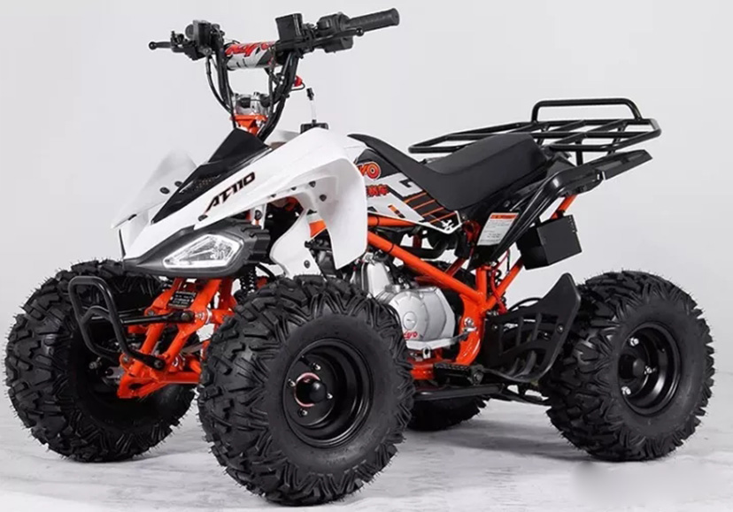 AT110是青少年使用的,华洋全地形系列中初级的专业运动型沙滩车,采用电启动发动机,一键启动,简单的变档操作,可以轻松驾驭。A字轮胎有更强的抓地力,可以承受成人的小幅度飞跃,适合作为运动训练车及初级比赛使用。▼