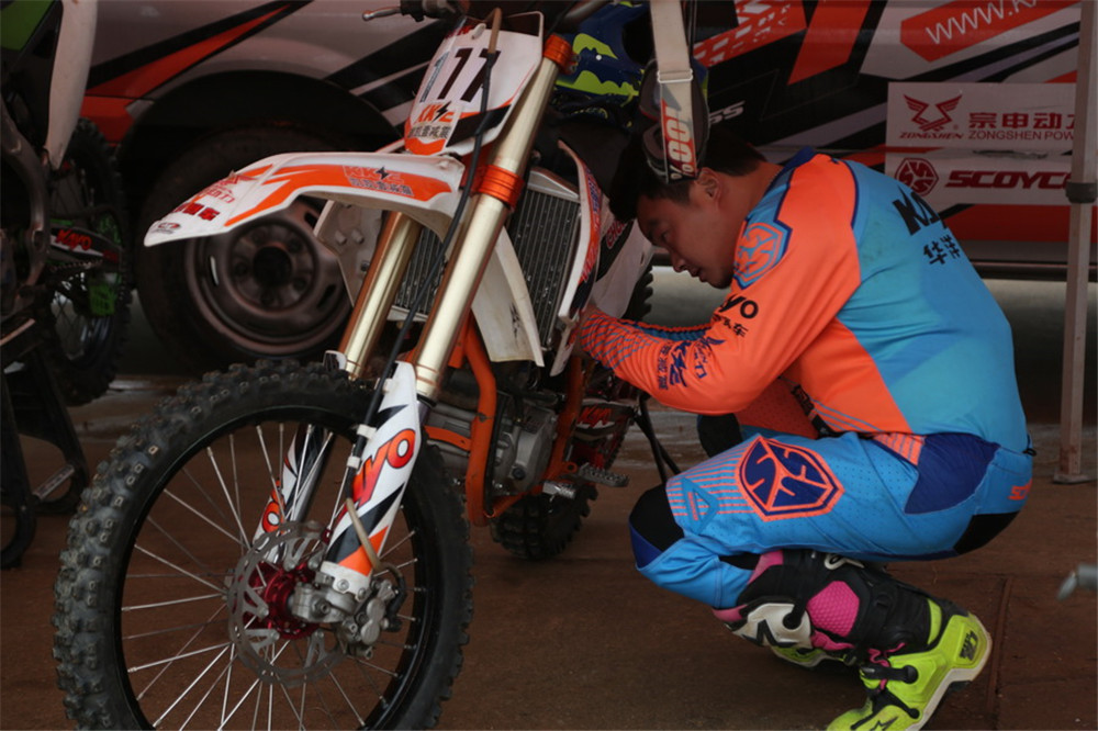 本次比赛聚集了众多越野摩托车高手。赛场上,华洋赛车队车手与众多高手的比拼十分激烈,车手们的飞跃、精湛的骑行技术、高性能的车辆,赢得现场观众一阵阵掌声和惊叫声,为我们的越野英雄加油!