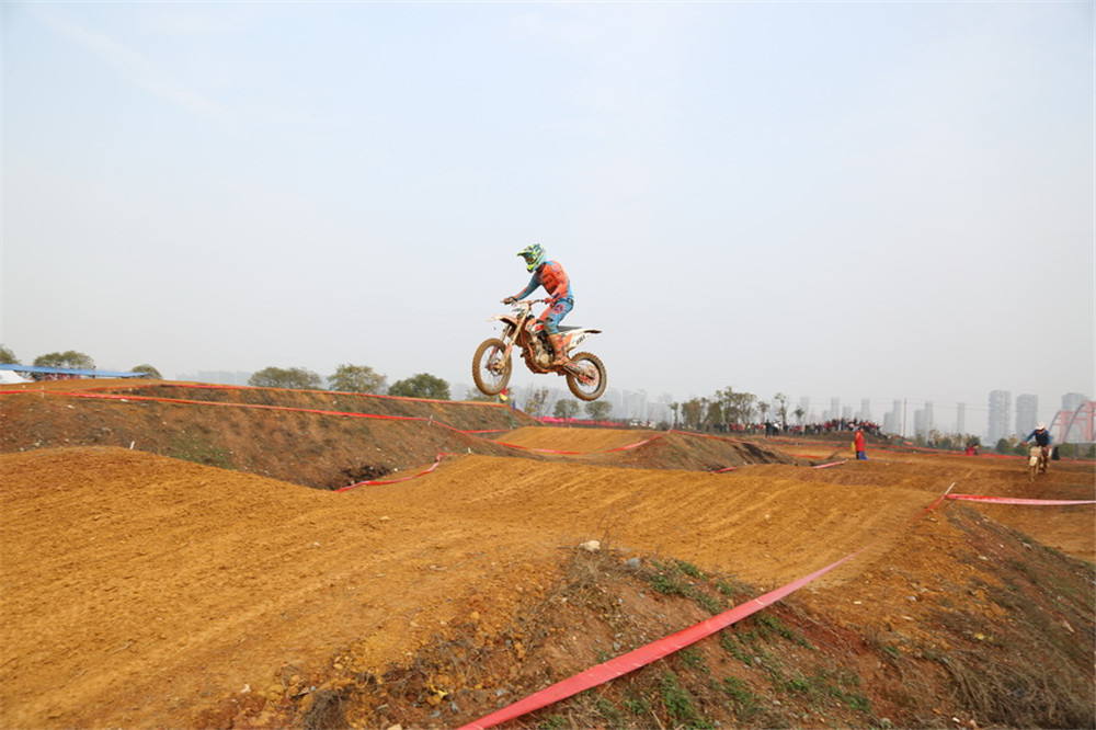 一辆辆越野摩托车在赛场内飞驰、奋力腾跃,闪转弯挪、弯道超车,都让现场观看的观众大饱眼福。