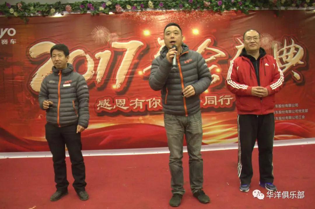 副总经理陈钧发表新年致辞,他分享了华洋赛车2017年整体的业绩报告及2018年工作展望,对一年来辛勤付出的全体员工们以及远道而来的合作伙伴代表致以真挚的感谢。