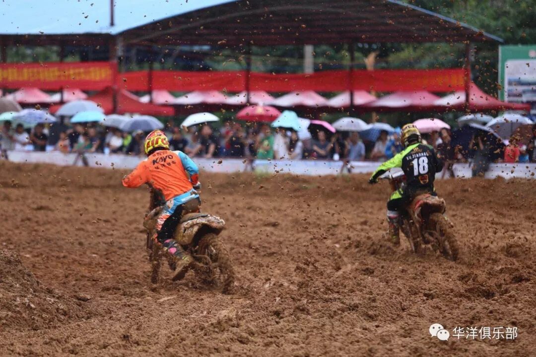 比赛正式开始,虽然下着大雨,但丝毫没有阻拦车手们的激情和群众的观看热情,泥泞的赛道增加了比赛的难度,摩托赛车手们依然上演了速度与激情的角逐。