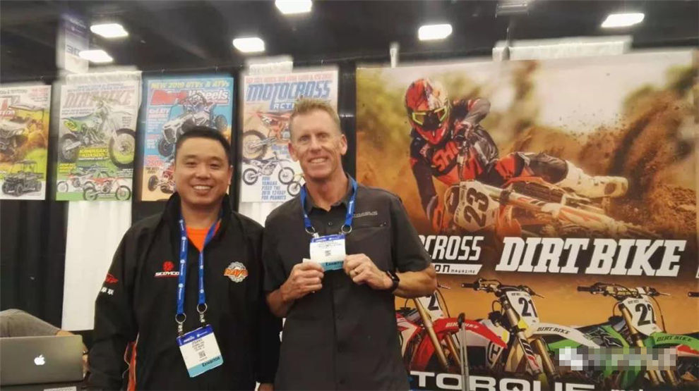华洋赛车作为中国的运动摩托车领军企业,也是以自主品牌第一次参加此次展会。虽然是首次亮相,凭借长期的品牌知名度和精细的产品质量,展会上华洋赛车尤其引人注目。就连全美最著名的两轮运动车刊物DIRT BIKE 杂志都专程到华洋展位来采访。展会期间大量的国际展商纷纷驻足华洋展位,对华洋赛车的性能和品质都做了详细的探讨和实车测试,都表示非常满意。