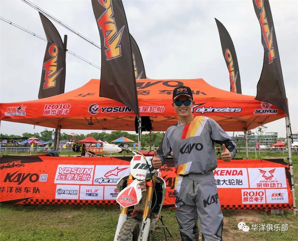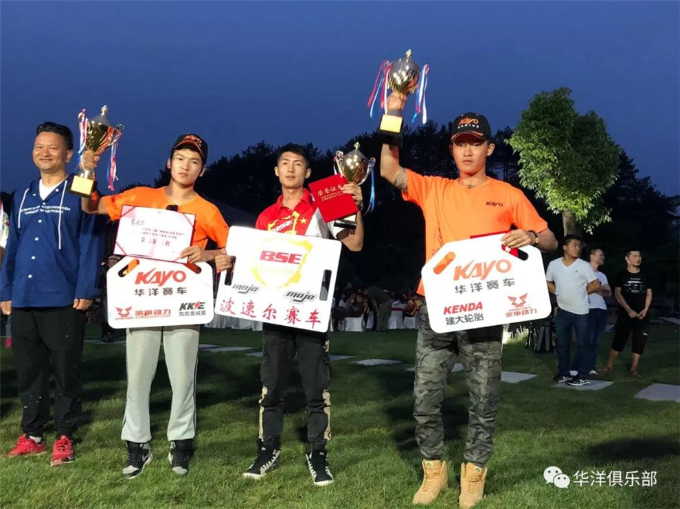 华洋赛车队181号蒲阳不失以往风采,驾驶华洋高端竞技车型K6-R配合精湛的骑车技术荣获第一名